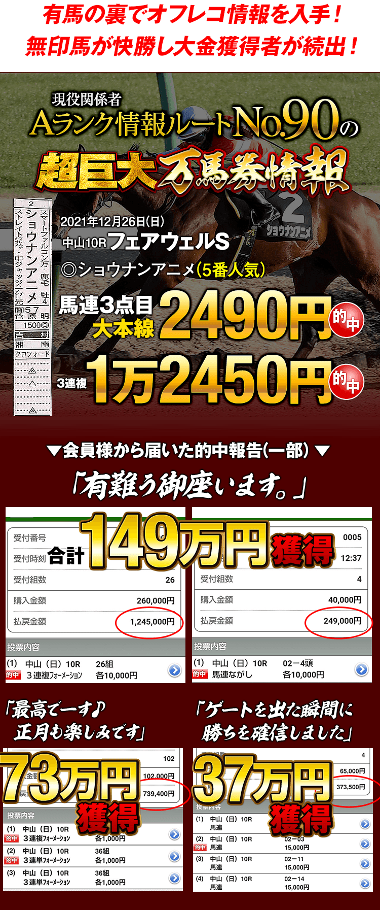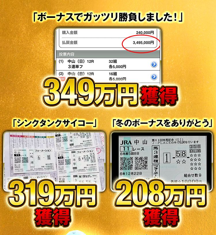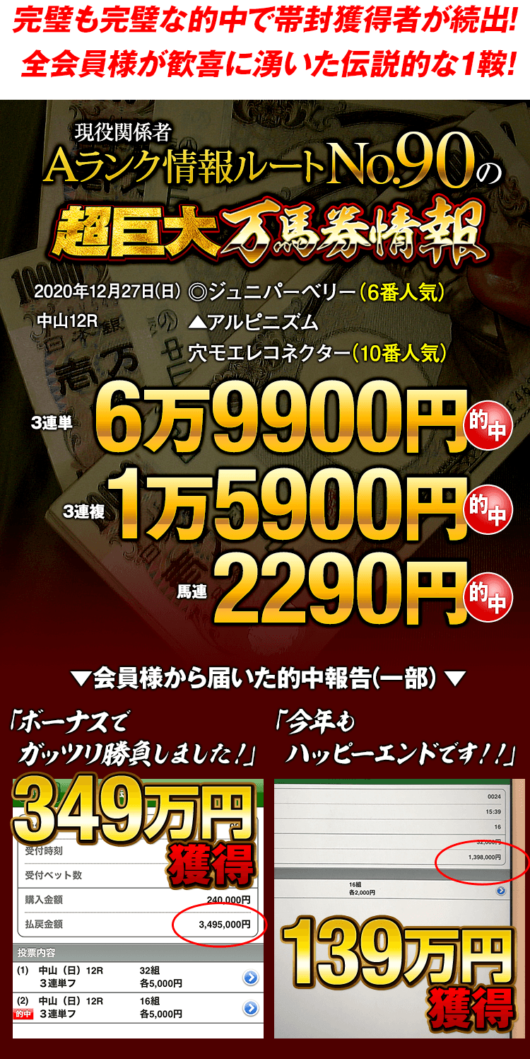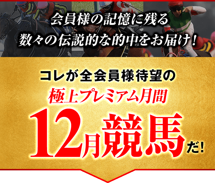 これまでも、毎年のように会員様の記憶に残る“伝説的な的中”をお届けしてきたのが、この12月競馬なのです!