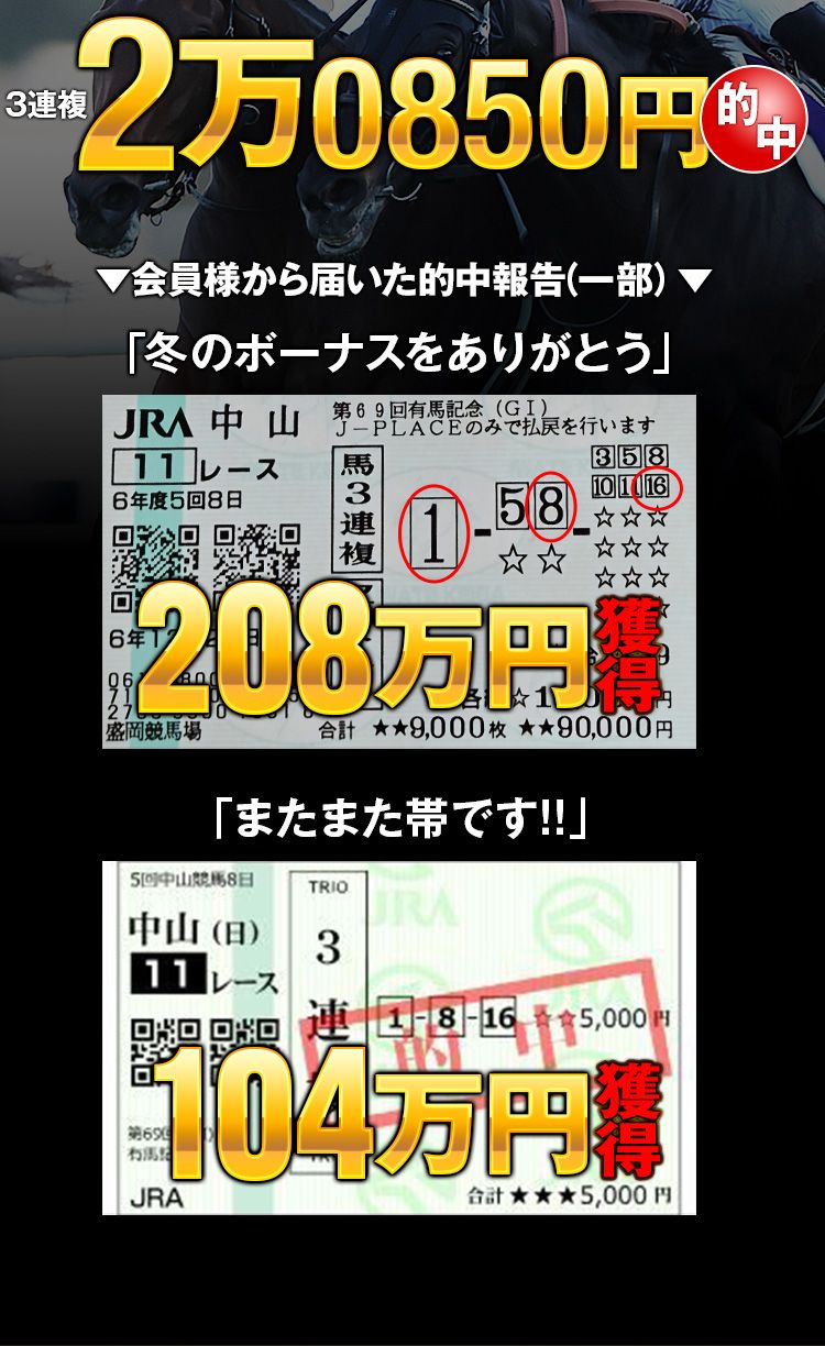 帯封獲得者続出の伝説的な1点的中!
